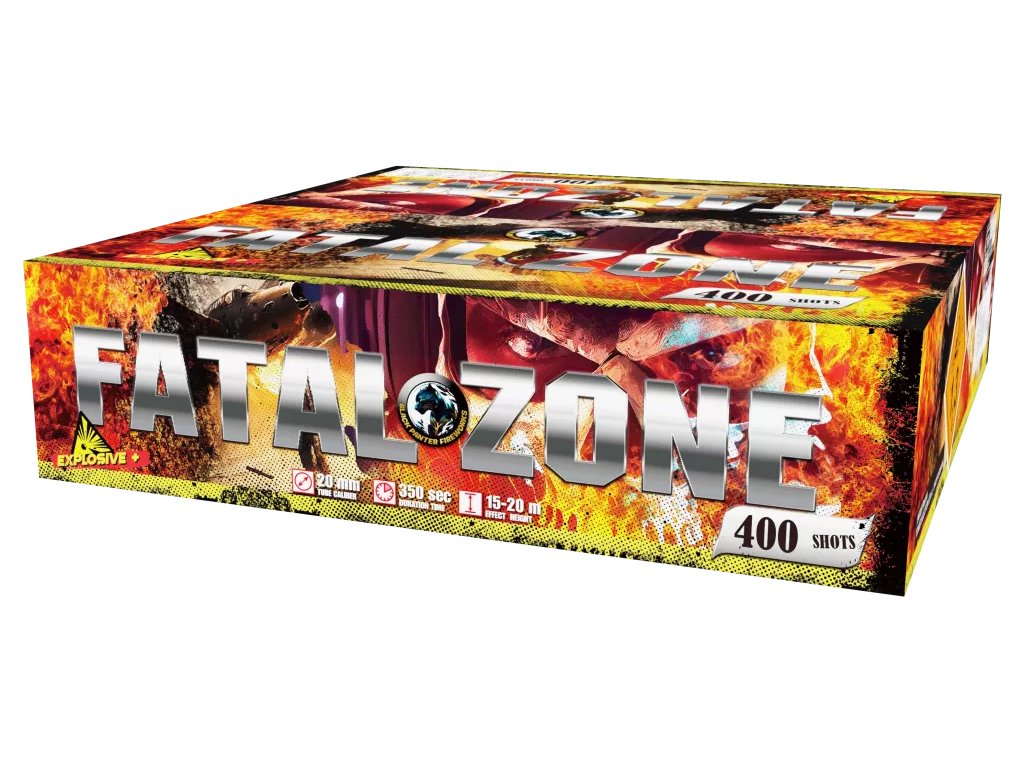 Zložený ohňostroj Fatal Zone 400 je sprevádzaný mixom rôznych viacfarebných efektov. Tento ohňostroj vypáli do vzduchu 400 rán o priemere 20 mm a doba trvania ohňostroja je 315 sekúnd. ADR zaradenie: 1,3G. Váha pyrotechnických zloží (NEC): 1978g. Kategória: F2 – predaj od 18 rokov.