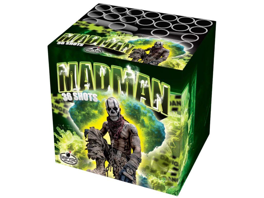 Ohňostroj Madman – 36 rán ráže 25 mm ponúka sekvencie dramatických explózií farieb a efektov. Výrazný ohňostroj, ktorý rozžiari každú oslavu.