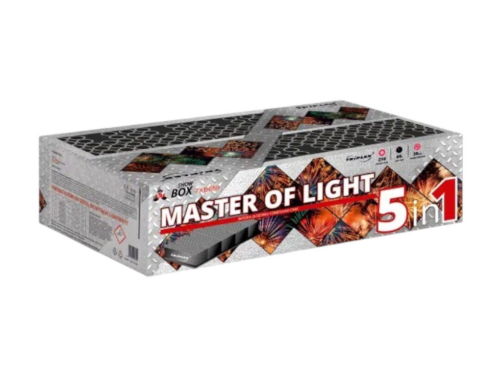 Zložený ohňostroj Master of Light je sprevádzaný rôznymi zlatými brokátovými efektmi. Tento ohňostroj vypáli do vzduchu 210 rán o priemere 25 mm a doba trvania ohňostroja je 60 sekúnd. ADR zaradenie: 1,3G. Váha pyrotechnických zloží (NEC): 1991,4g. Kategória: F2 – predaj od 18 rokov.