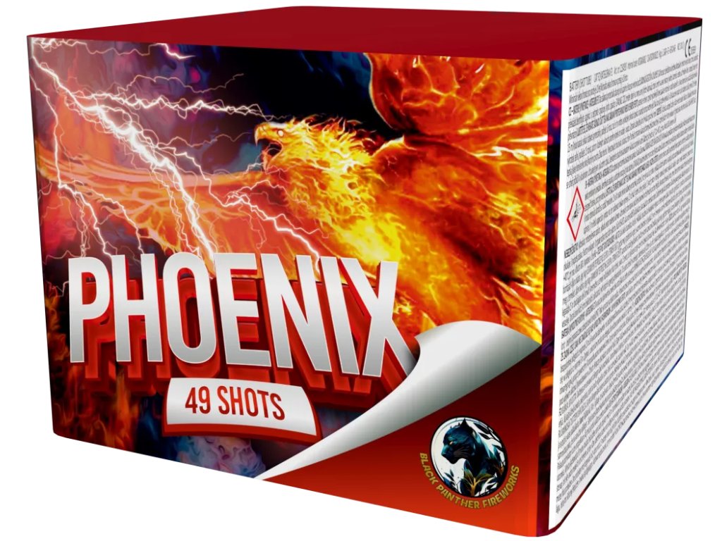 Kompaktný ohňostroj Phoenix je sprevádzaný mixom rôznych farebných efektov . Tento ohňostroj vypáli do vzduchu 49 rán ráže 20 mm a doba trvania ohňostroja je 50 sekúnd. Kategória nebezpečnosti: F2 – predaj od 18 rokov