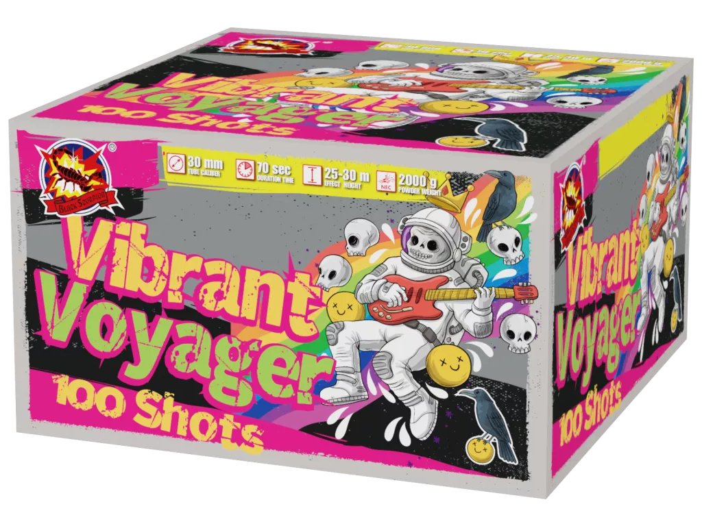 Kompaktný ohňostroj Vibrant Voyager 100rán je sprevádzaný zlatými brokátovými efektami s farebnými svetličkami. Tento ohňostroj vypáli do vzduchu 100 rán o priemere 30 mm a doba trvania ohňostroja je 70 sekúnd. ADR zaradenie: 1,3G. Váha pyrotechnických zloží (NEC): 2000g. Kategória: F2 – predaj od 18 rokov.